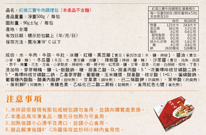 產品規格:(1)紅燒牛肉調理包500g (2)川味牛肉調理包500g (3)紅燒三寶牛肉調理包500g